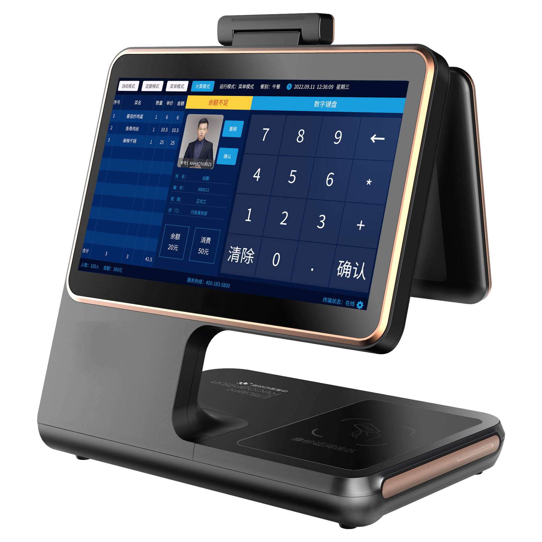 2. 支持人脸识别、CPU卡、IC卡、NFC手机刷卡支付;
